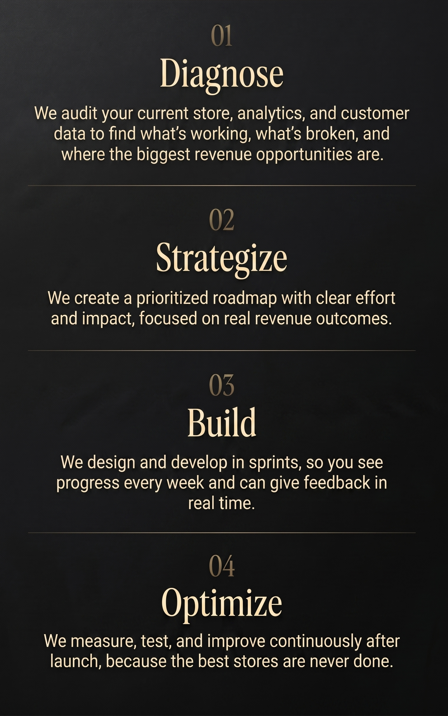 We don’t make pretty stores for the sake of it. We design conversion systems that guide customers from first click to repeat purchase — using the same proven strategies behind top DTC brands.